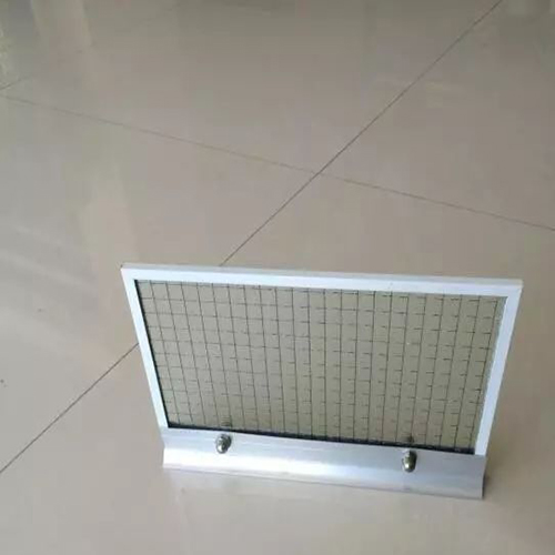 夹丝玻璃挡烟垂壁所使用的玻璃是安全玻璃的一种。夹丝玻璃也称防碎玻璃和钢丝玻璃。它是将普通平板玻璃加热到红热软化状态时,再将预热处理过的铁丝或铁丝网压入玻璃中间而制成,故其抗折强度和耐温度剧变性都比普通玻璃高。