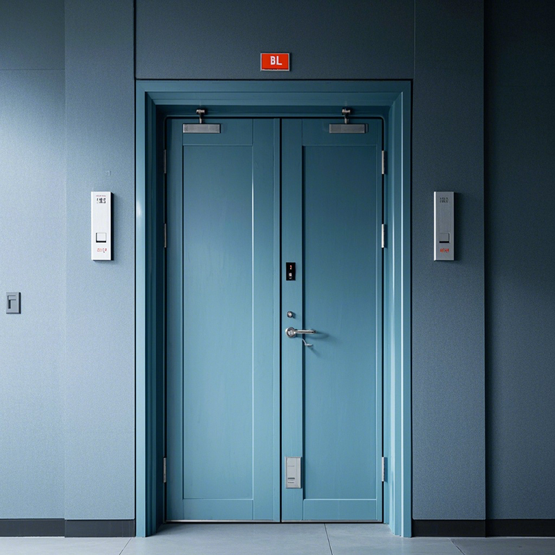 门扇:门扇内填充防火隔热材料,像岩棉、珍珠岩等,外部再包裹金属板、木板等面板。其厚度有相应标准,保证具备良好防火性能。