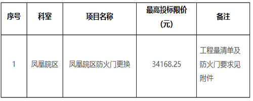 遵义市第一人民医院凤凰院区防火门更换采购公告(工程)